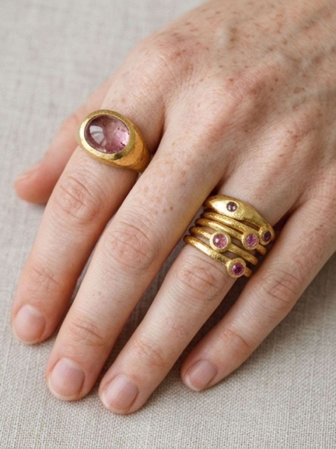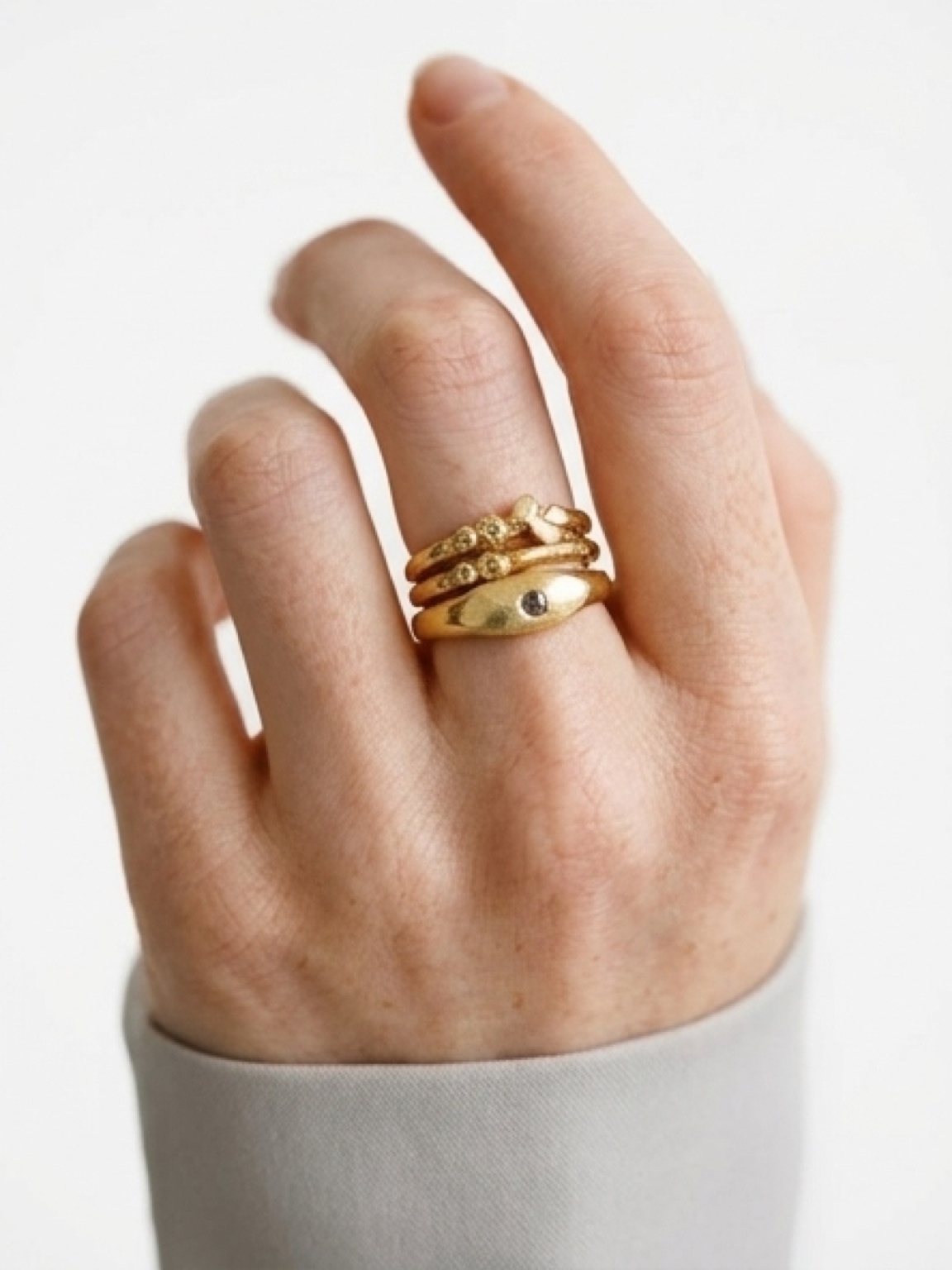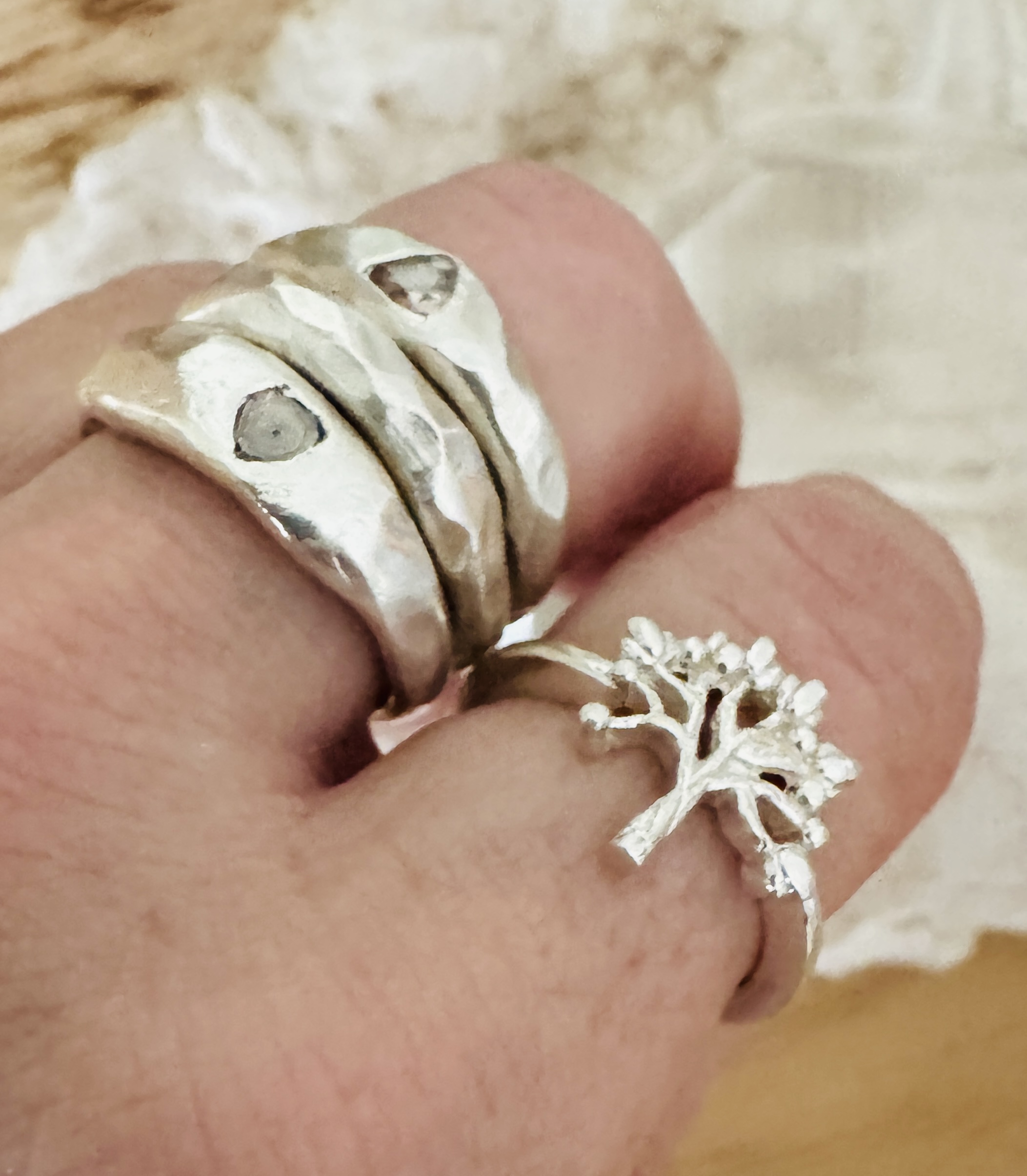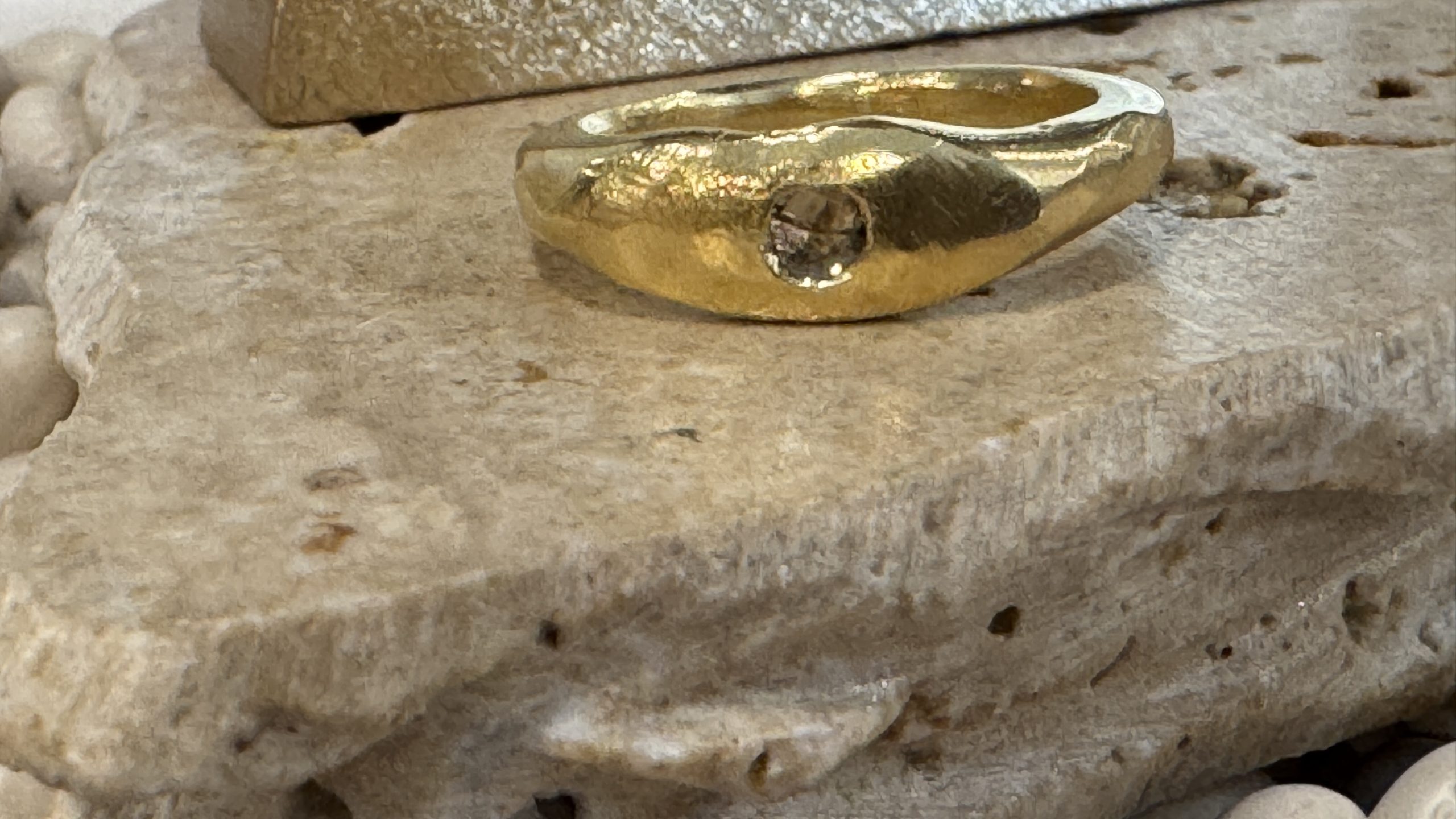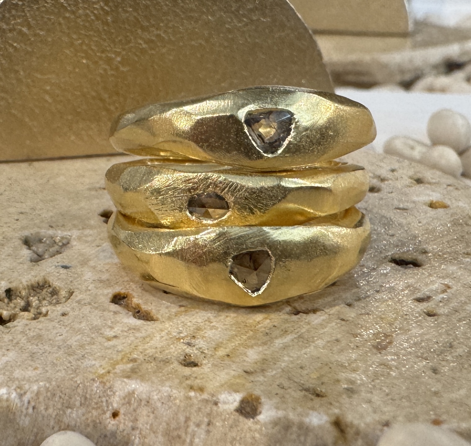 Diamond slices are just as valuable as polished diamonds. The more unique the inclusions are, the more likely it will fetch higher prices. The only catch is that a diamond slice will have lower carat weight than a brilliant polished cut diamond since it’s flatter. With fairtrade chocolate old mine cut diamond slice, about 0.02 ct each.Sizes 5-10, layers scrumptiously. Handmade in recycled sterling silver, the stone set with a little opening on the back so that the ring looks uniquely different when worn, depending on your skin tone. Price is for one ring